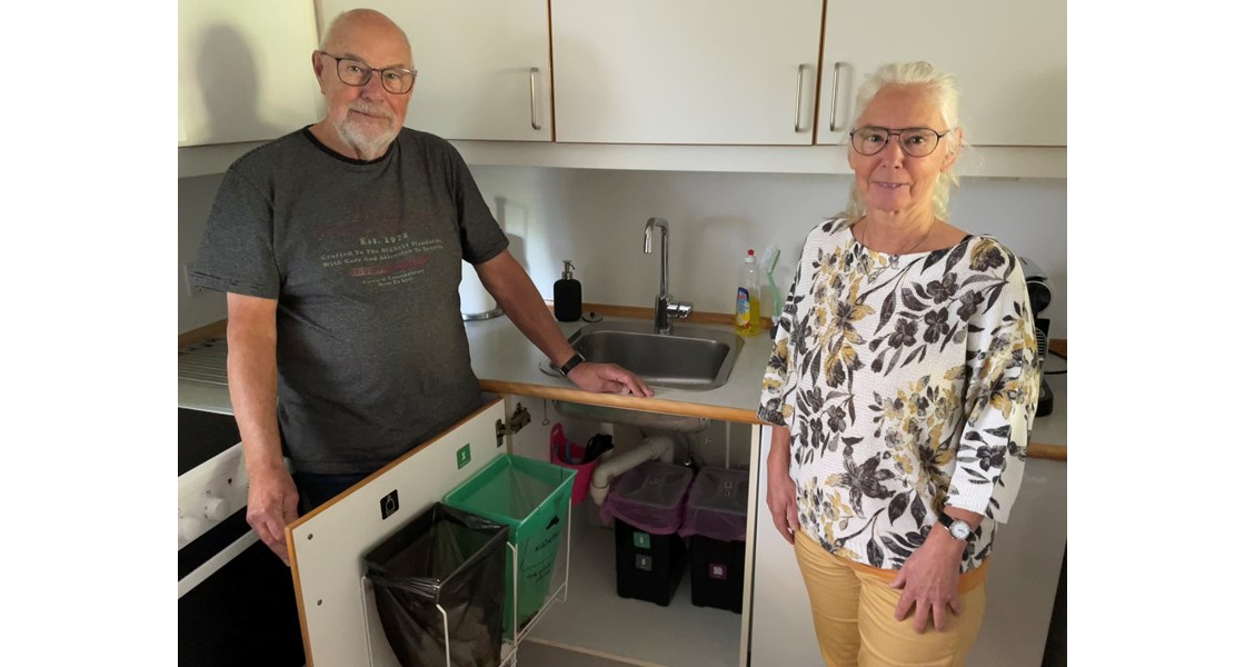 Med en mindre oprydning og omrokering i skabene er det lykkedes for parret at finde plads til nye beholdere, og de er kommet godt fra land med den nye måde at sortere på, hvor de fra starten har haft en vejledning hængende i køkkenet.