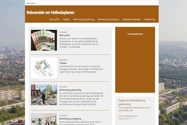 På Beboerside om Helhedsplanen kan du som beboer finde informationer om, hvad Helhedsplanen kommer til at betyde for dig og dit lejemål. Du kan også blive klogere på hvad planen kommer til at betyde for området,